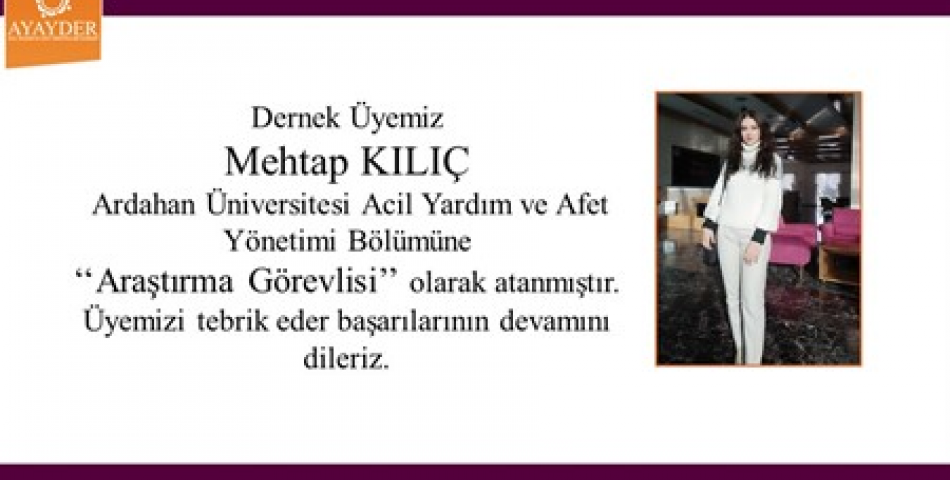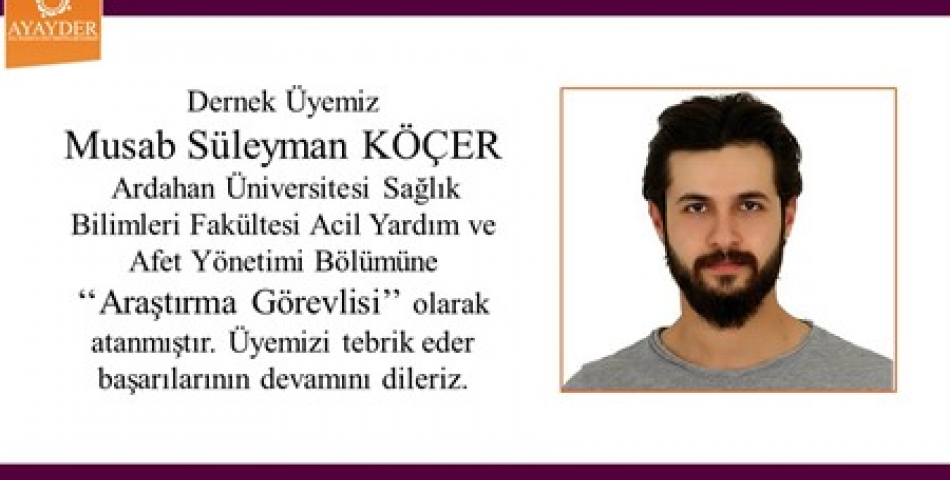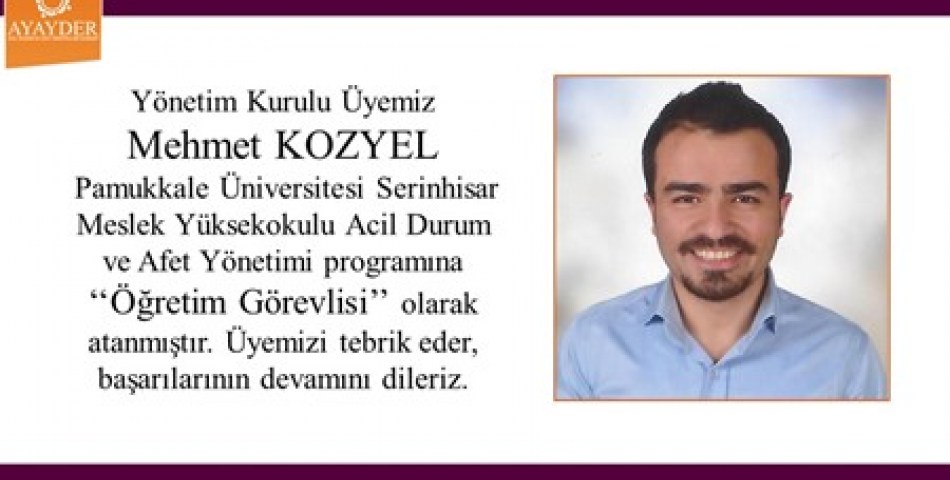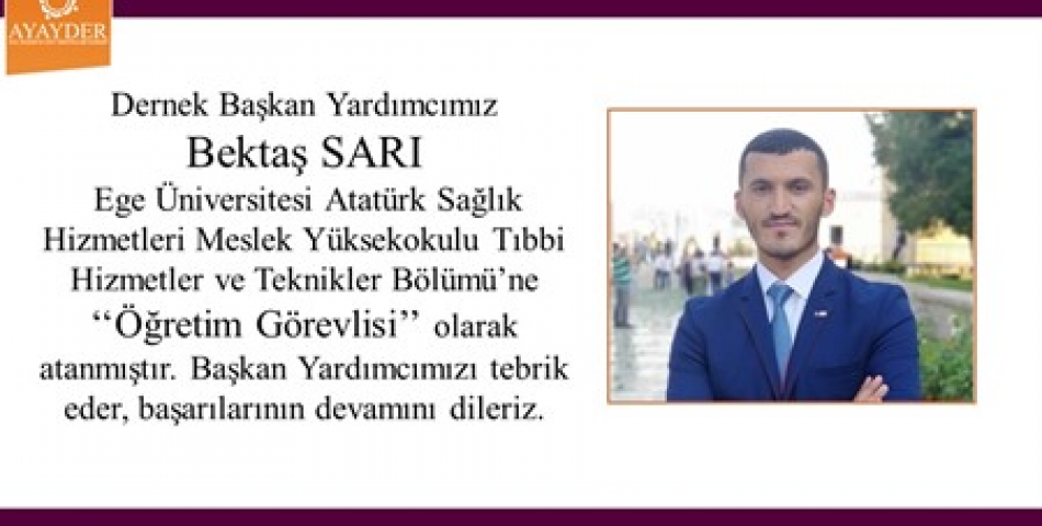 Dernek Başkan Yardımcımız Bektaş SARI Ege Üniversitesi Atatürk Sağlık Hizmetleri Meslek Yüksekokulu Tıbbi Hizmetler ve Teknikler Bölümü’ne ‘‘Öğretim Görevlisi’’ olarak atanmıştır