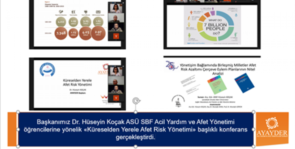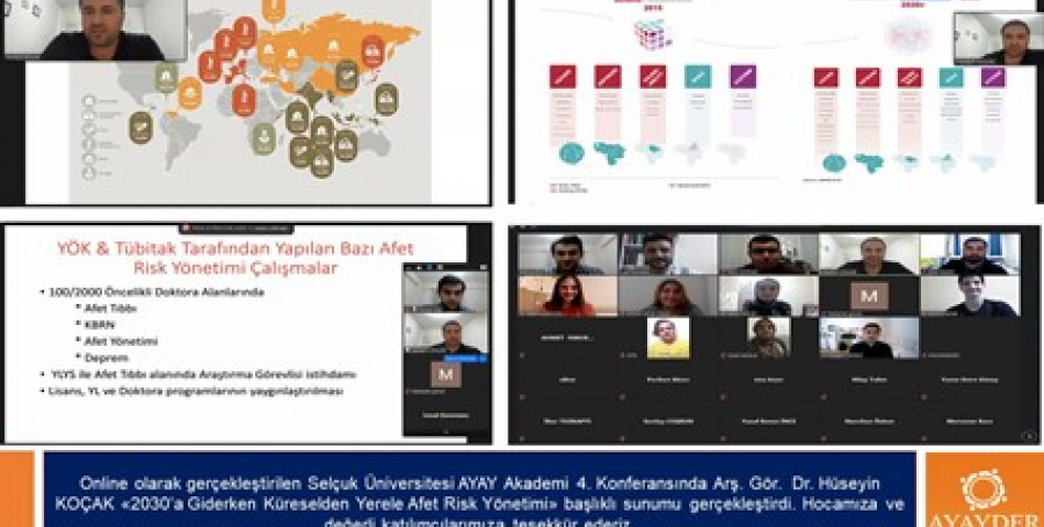 12. AYAYDER Konferans Serisi'nde İstanbul Teknik Üniversitesi Uçak ve Uzay Bilimleri Fakültesi Meteoroloji Mühendisliği Bölümü Öğretim Üyesi Prof. Dr. Mikdat KADIOĞLU "İklim Değişikliği, Kuraklık, ve Afet Yönetimine Yansımaları" başlıklı bir konferans gerçekleştirdi.
