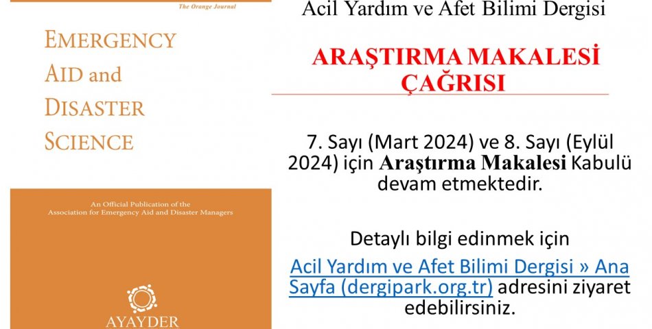 Acil Yardım ve Afet Bilimi Dergisi Makale Çağrısı!