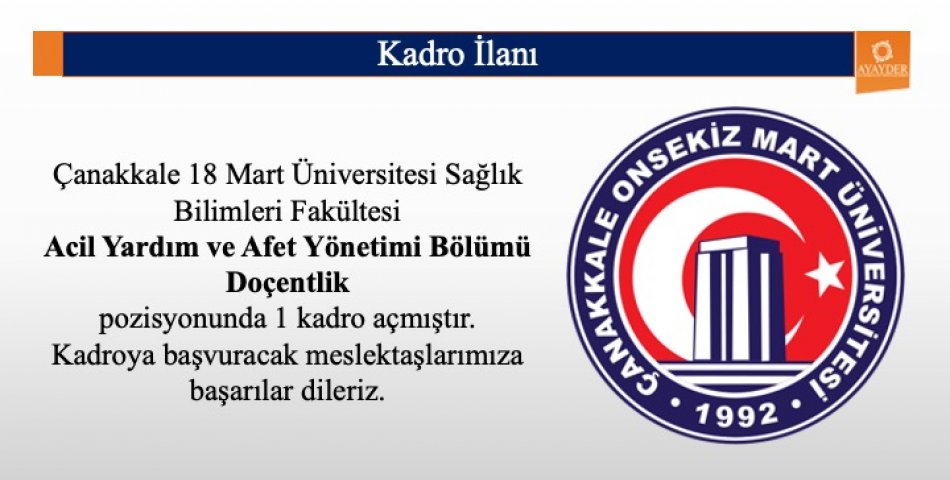Çanakkale 18 Mart Üniversitesi Öğretim Üyesi Kadro İlanı