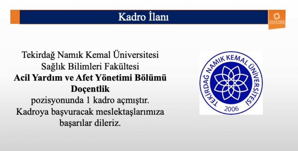 Tekirdağ Namık Kemal Üniversitesi Öğretim Üyesi Kadro İlanı