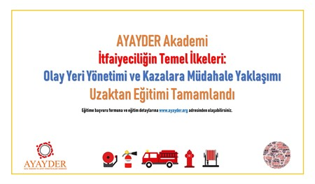 AYAYDER Akademi 1. İtfaiyeciliğin Temel İlkeleri: Olay Yeri Yönetimi ve Kazalara Müdahale Yaklaşımı Uzaktan eğitimi tamamlandı. Eğitimi tamamlayan AYAY'ları tebrik ederiz.
