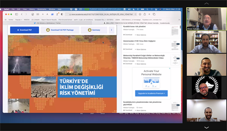 iklim değişikliği, İklim değişikliğine neden olan faktörler, iklim değişikliğinin sonucunda ortaya çıkan afetler ve bu afetlerinin toplumlar üzerinde nasıl etkilere sebep olabileceği ile ilgili konular konuşulmuştur. Prof. Dr. Mikdat KADIOĞLU aynı zamanda iklim değişikliğinin gelecekteki etkilerinin azaltılabilmesi için uygulanması gereken kalkınama planları, politikalar vb. hakkında bilgi vermiş; toplumun iklim değişikliği hakkında eğitilmesi konularında da kapasitemizin arttırılması gerektiğine vurgu yapmıştır. Son olarak hocamız bilimsel kaynaklarına (makale, derleme, kitap vb.) nerelerden ücretsiz bir şekilde ulaşılabileceğimize dair bilgileri meslektaşlarımızla paylaştı.