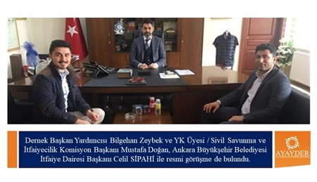 Dernek Başkan Yardımcısı Bilgehan Zeybek ve YK Üyesi / Sivil Savunma ve İtfaiyecilik Komisyon Başkanı Mustafa Doğan, Ankara Büyükşehir Belediyesi İtfaiye Dairesi Başkanı Celil SİPAHİ ile resmi görüşme de bulundu.