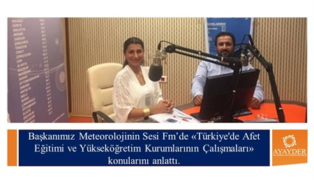 Başkanımız Meteorolojinin Sesi Fm'de "Türkiye'de Afet Eğitimi ve Yükseköğretim Kurumlarının Çalışmaları" 09 Ağustos 2021, 22:00