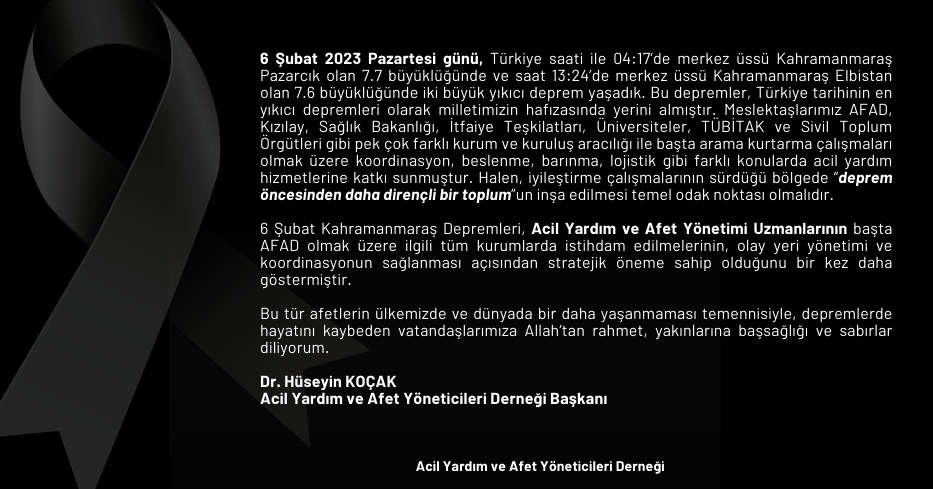 Başkanımızın 6 Şubat Kahramanmaraş Depremleri Mesajı