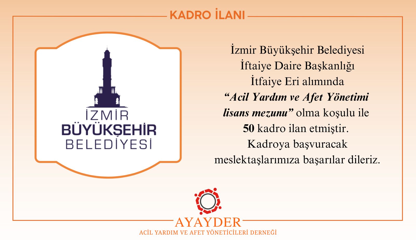 - İzmir Büyükşehir Belediyesi İtfaiye Eri Kadro İlanı